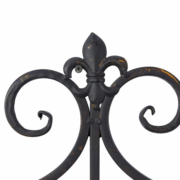 - Features a fleur-de-lis pattern with a scrollwork base design