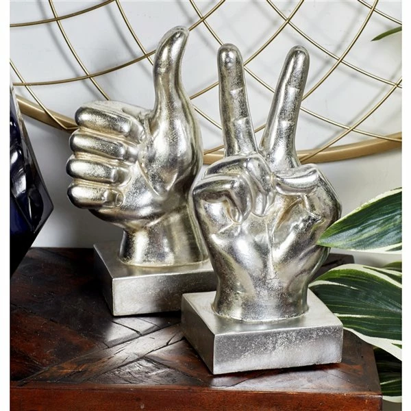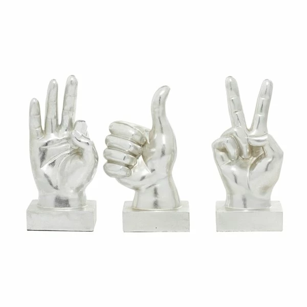 - This table decor features a trio of 3D hand sign sculptures with slight detailing for realistic features