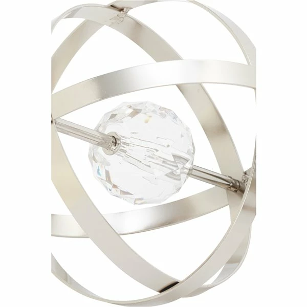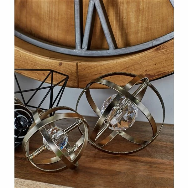 - A metal orb frame with a middle rod holding a large clear crystal for a glamorous look