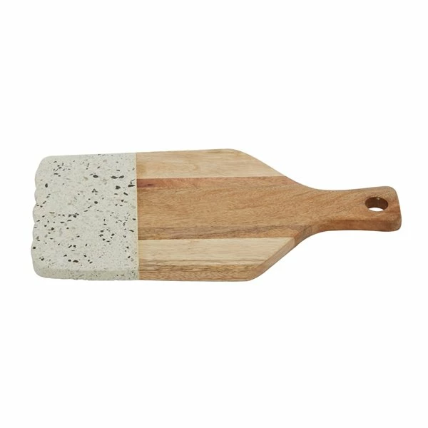 - Solid mango wood and terrazzo construction