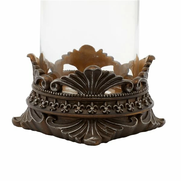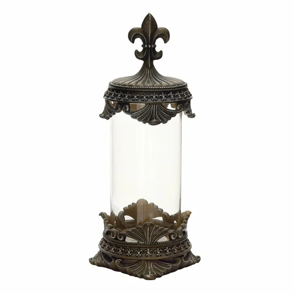 - Brass finished tops and bases, featuring fleur de lis designs