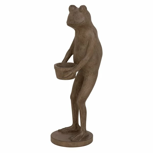 - Features a detailed standing frog carrying a water pot design