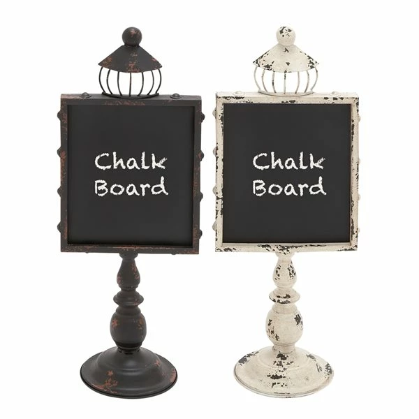 Best deal 🧨 Grayson Lane Farmhouse Distressed Black and White Finish Metal and Wood Chalkboard Decorative Sign – Set of 2 🧨