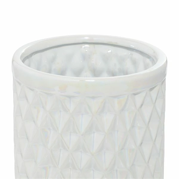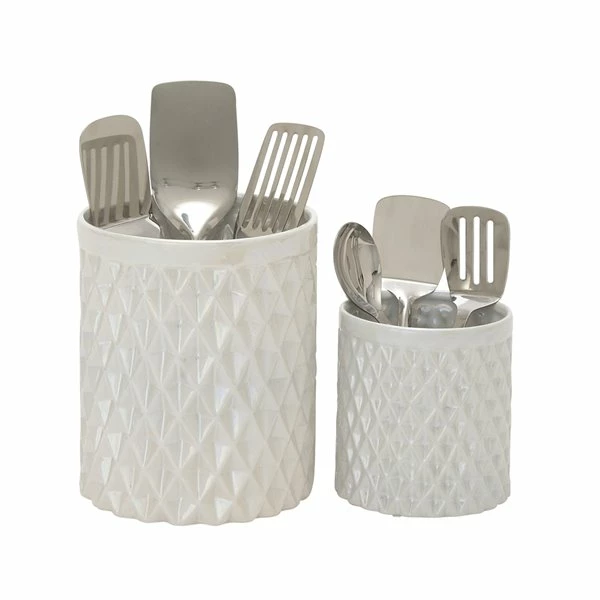- 2-piece decorative round shaped jars set that features glossy white finish and geometric pattern design