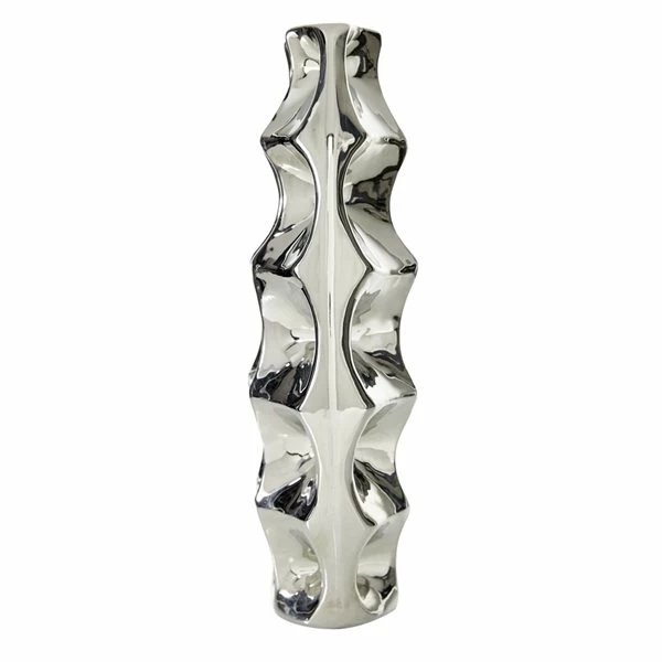 - Metal vase look with a shiny electroplated silver finish over the ceramic vase body with 15 cut-out holes