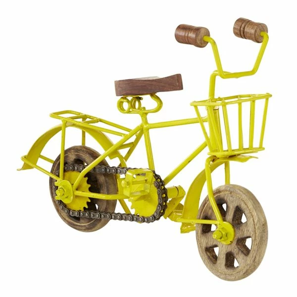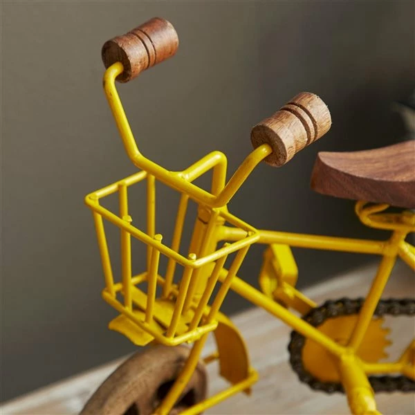 - Trio of red, yellow, and blue bicycle sculpture table decor