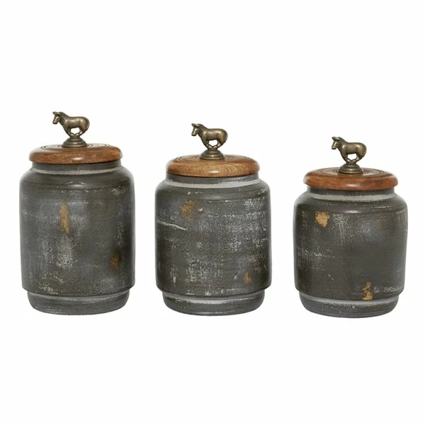 - A set of jars with silicone seals and a mini horse sculpture knob for easy open
