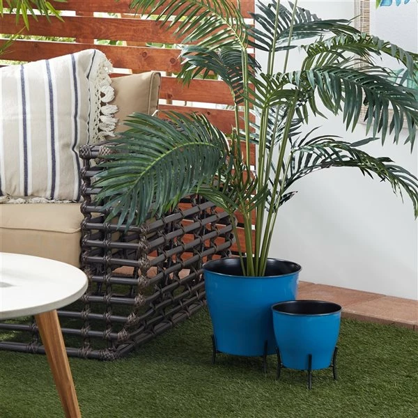 Best Pirce 🔥 Grayson Lane 11.85-in W x 11.95-in H Blue Metal Planter – 2-Pack ⭐