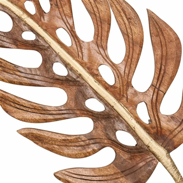 - This leaf wall art decor set highlights textured brown lacquered overall finish