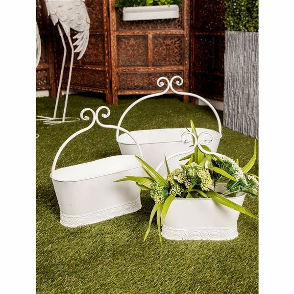 Best Pirce 🤩 Grayson Lane 15-in W x 16-in H White Metal Planter – 3-Pack 🥰