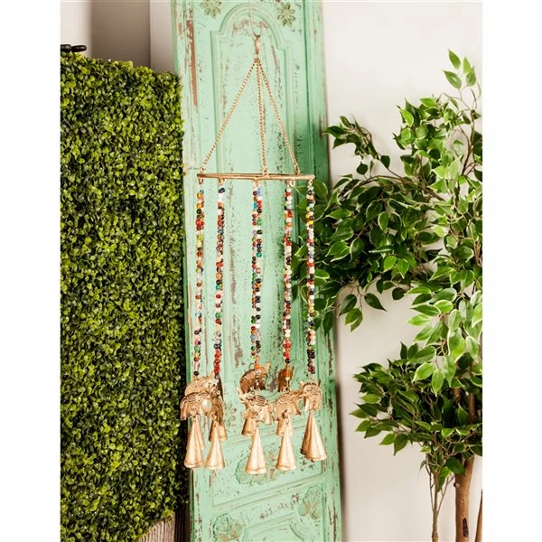 Best Pirce ✨ Grayson Lane 26-in Gold Metal Elephant Wind Chime with Bells and Multicoloured Glass Beads ❤️