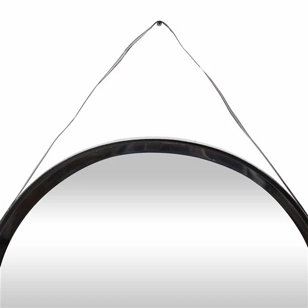 - Rounded black frame along with a hanging strap, features an extra-large round reflective glass panel