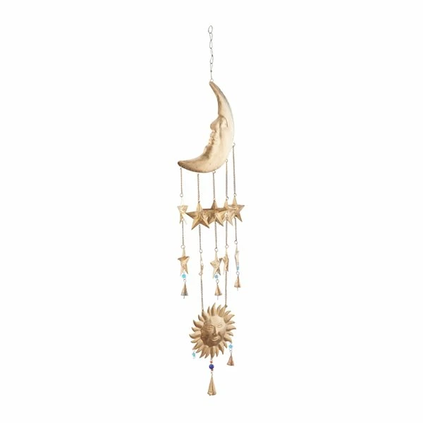 Best Pirce ⭐ Grayson Lane 39-in Gold Metal Sunface Wind Chime with Moon and Stars ✨