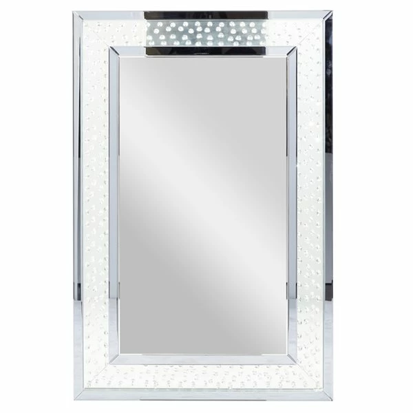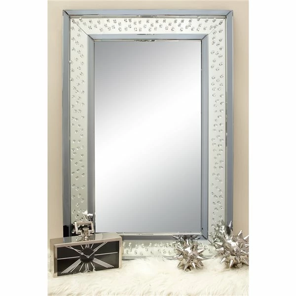 - This rectangular wall mirror is designed with stunning clear glass jewels
