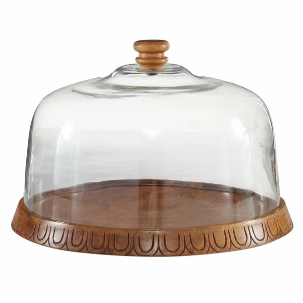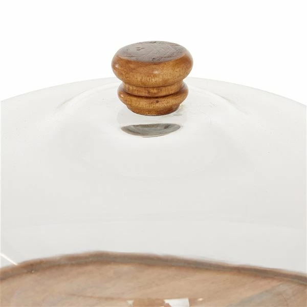 Best Pirce 👍 Grayson Lane 9-in x 13-in Natural Cake Stand with Cloche – Brown Wood and Glass ✨