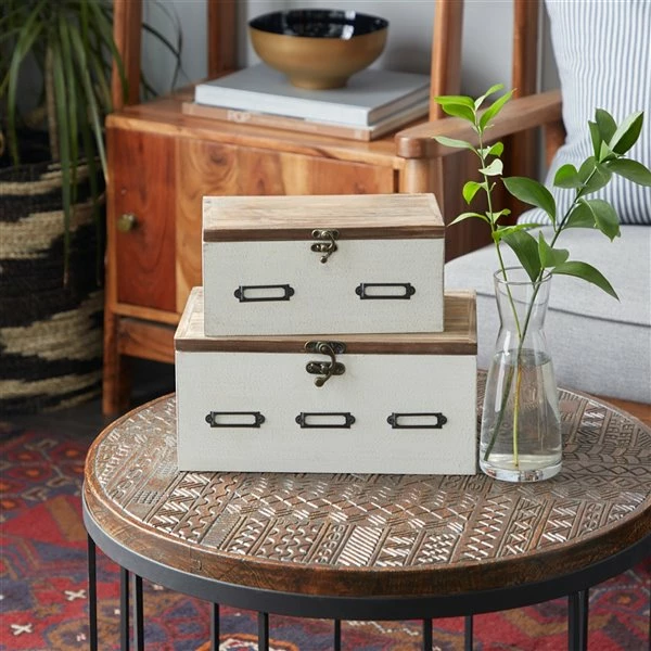Best Pirce 😀 Grayson Lane Set of 2 10-in , 12-in White Contemporary Box – Wood 😍