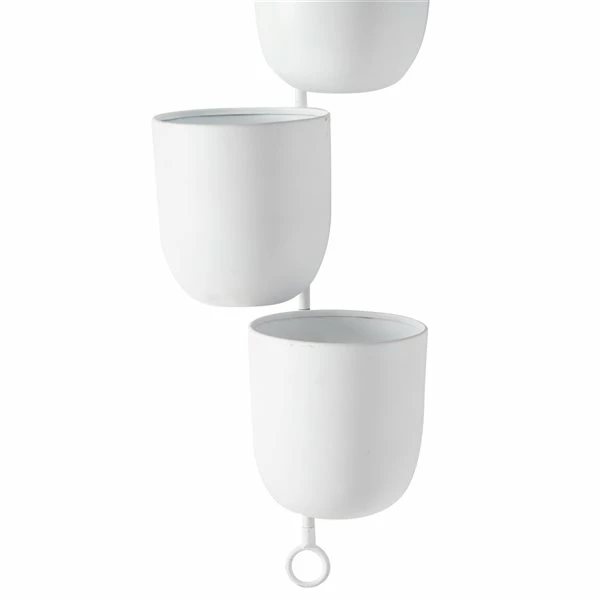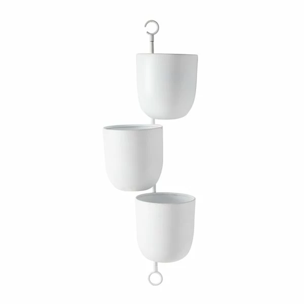 - Wall-mounted planter rack featuring a set of three 12-in white hanging planters