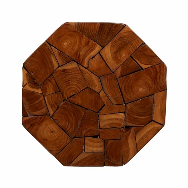 - In this octagon side table, irregularly cut 100% teak wood pieces were used in its block-style frame