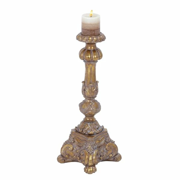 Best reviews of 🎁 GRAYSON LANE 22 In. x 8 In. Rustic Candlestick Holders Gold Polystone 💯