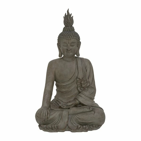 - This Zen sculpture features a sitting, meditating Buddha promoting a calm and relaxed ambience