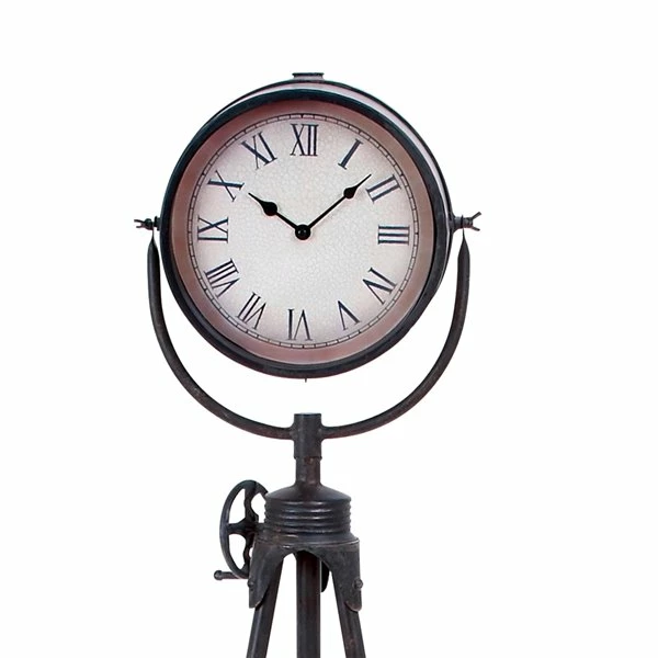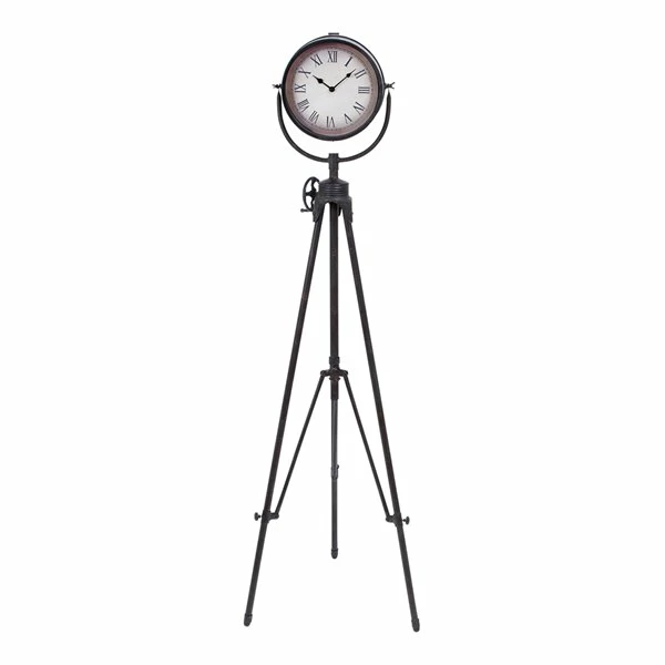 - With a spotlight-inspired structure, this floor clock is designed with an adjustable tripod stand