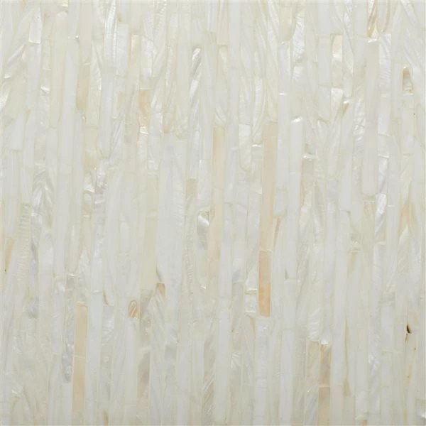 - Features a beige finish and a cream shell patterned mosaic inlay