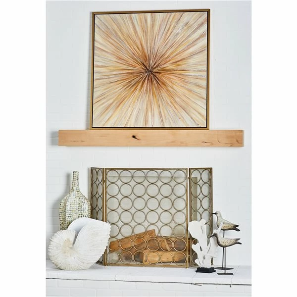 - Metallic gold frame housing an acrylic painting featuring a starburst design with lines jutting out from the centre point