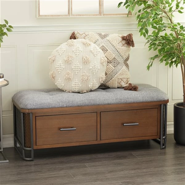 - This wood and metal storage bench features two full-sized pull-out drawers perfect for all your storage needs without giving up style