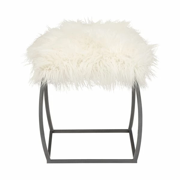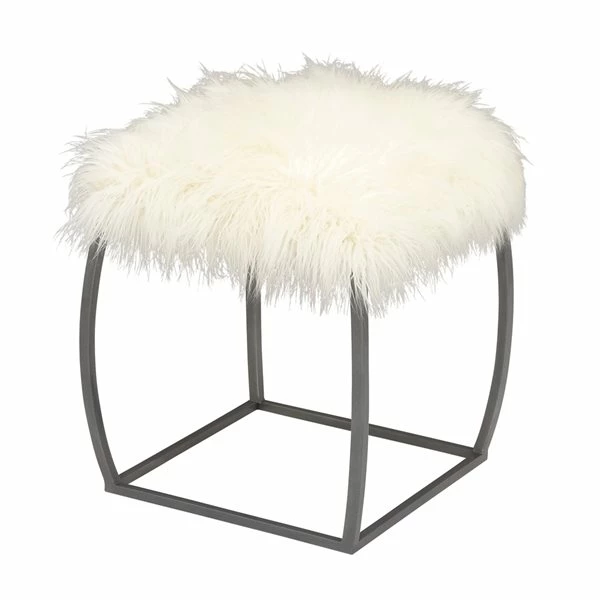 - With robust iron and faux fur materials, this white and grey stool is sure to make a bold statement in a living room or home office