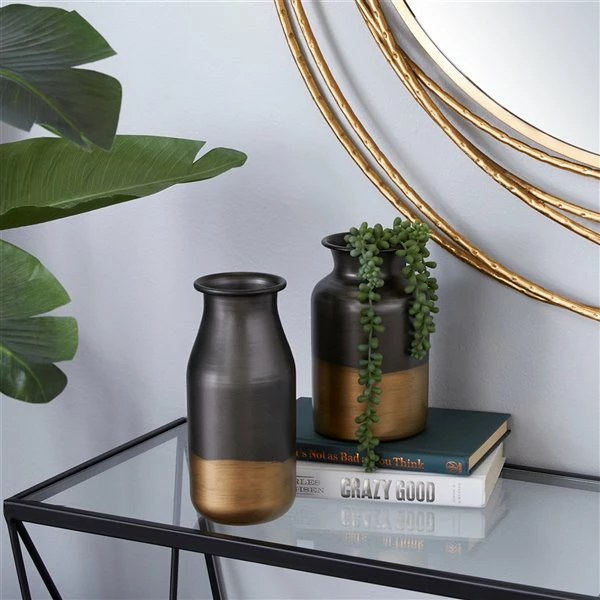 Best reviews of 🔥 Grayson Lane Set of 2 8-in , 9.25-in Contemporary Vase – Gold – Metal 👏