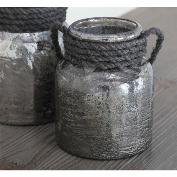 - This glass lantern candle holder is made of natural jute rope and glass materials