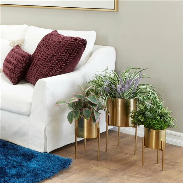 Best Sale โค๏ธ Grayson Lane 10-in W x 18-in H Gold Metal Planter – 3-Pack ๐