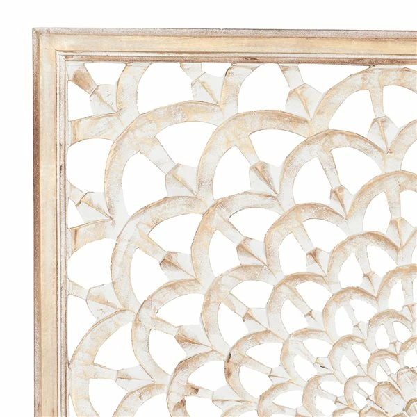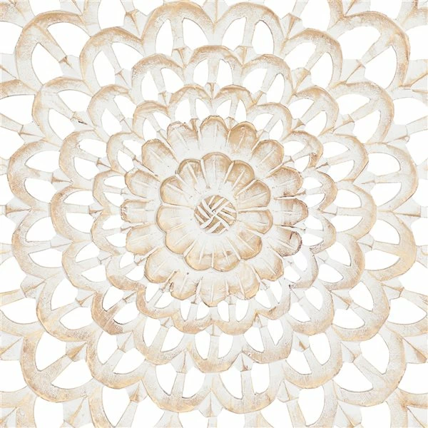- Features intricate cut-out wood surface and concentric floral wood carvings