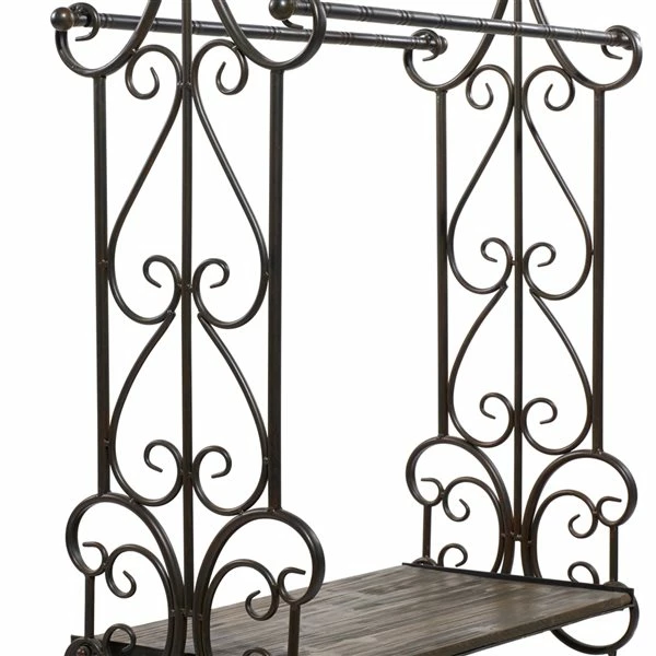 - Built with 3 convenient metal towel racks, features detailed ironwork side panels