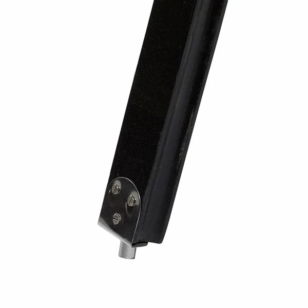 - A shiny black finish is evident on the 3 legs, while silver is seen on the knobs and head