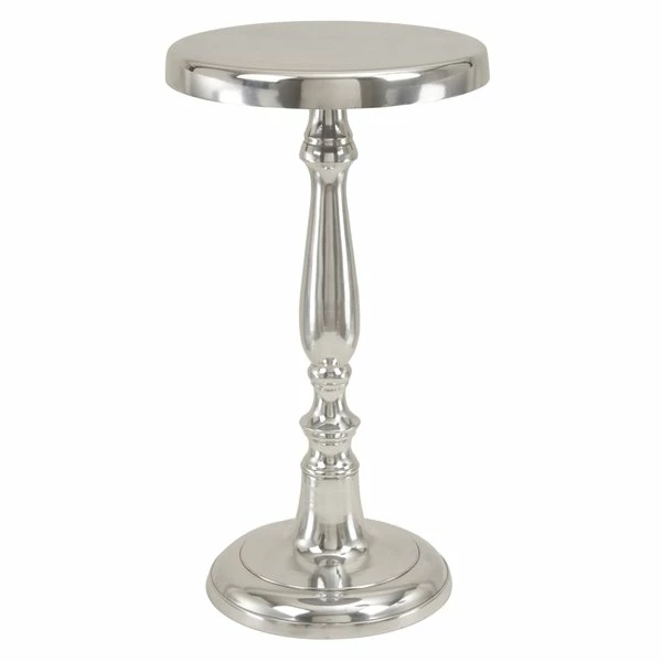 - This round silver accent table is made of solid aluminum for a lightweight yet sturdy design