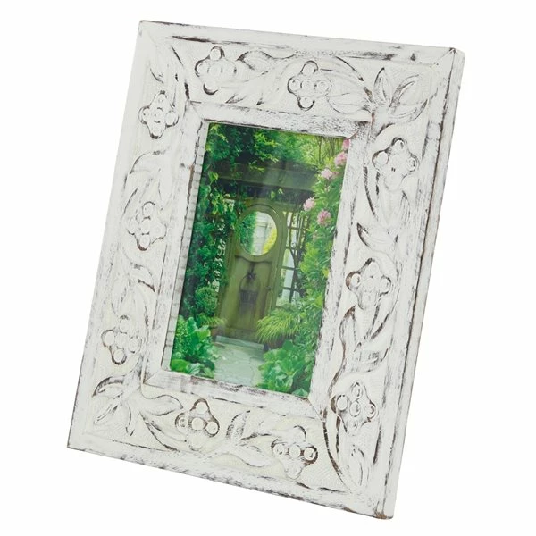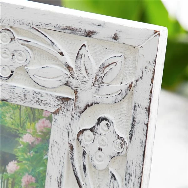 - Features rich textural details with hand-carved wood flourishes with a soft, neutral whitewash finish