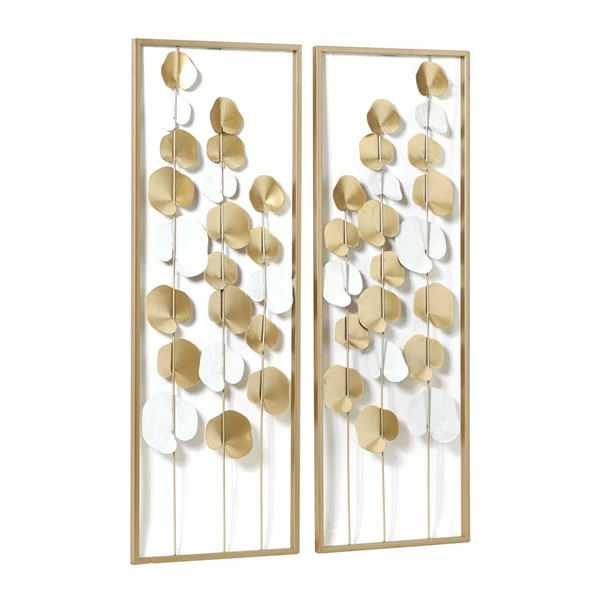 Brand new ๐ Grayson Lane 12-in x 33.5-in Gold Metal Modern Floral Wall Decor – Set of 2 ๐