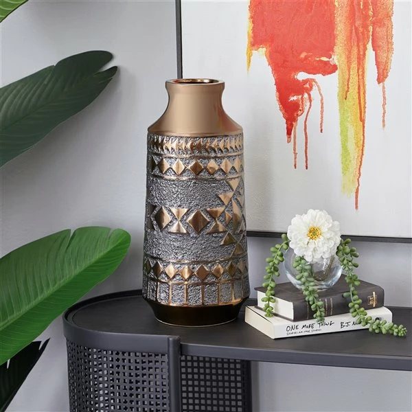 - Transform your contemporary living spaces with the addition of this stunning gold ceramic vase