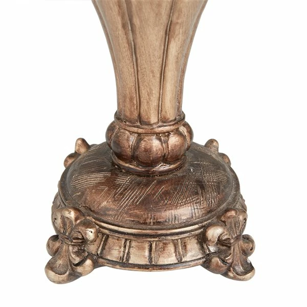 - Vase-inspired bodies with intricate detailing and round bases with fleur-de-lis accents