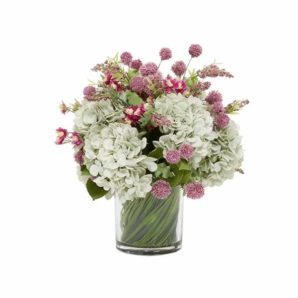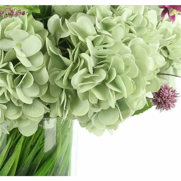 - This artificial hydrangea flowers display is crafted using silk fabric and a glass ceramic vase