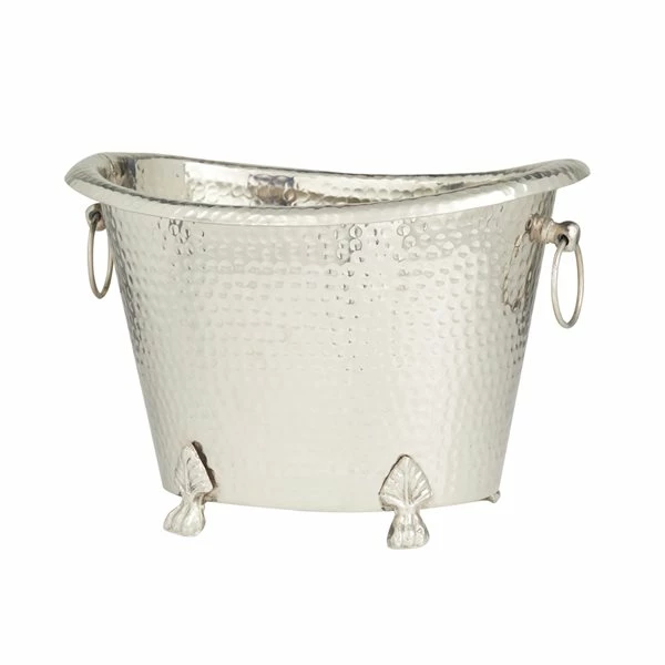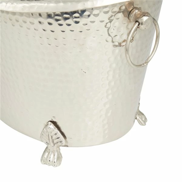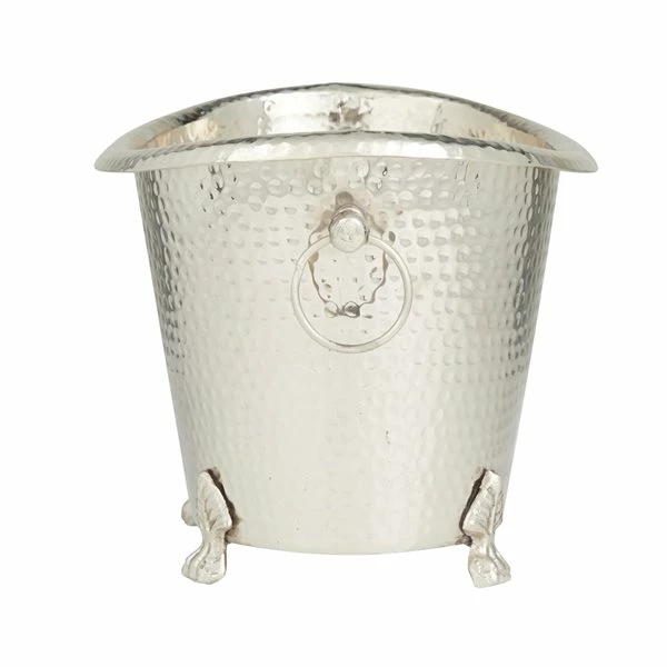 - Delicate hammered patterned texture complement the seashell-inspired leg stands of this wine bucket with a folded rim and 2 ring handles