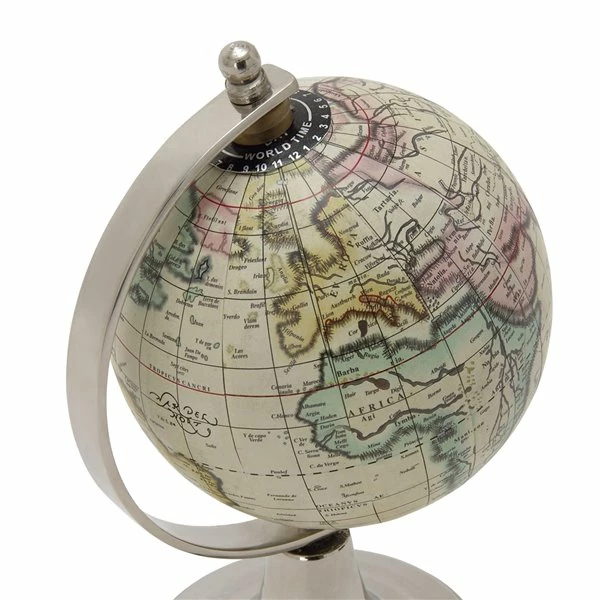 - This cream globe features geographical land mass on a sturdy tapered round base