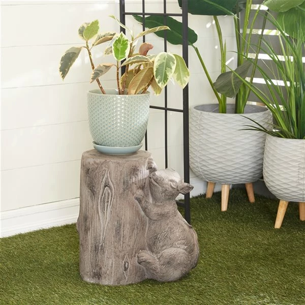 - A mouse hugging a tree stump poses for this garden sculpture with carved intricate mouse fur and tree bark natural patterns