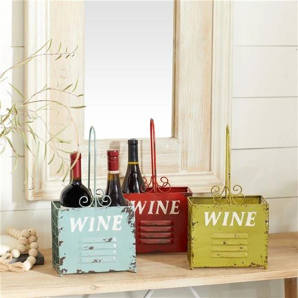 - This vibrant set of charming wine holders feature a basket shape with a tall U-handle