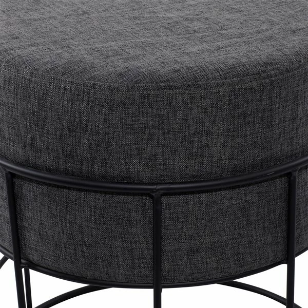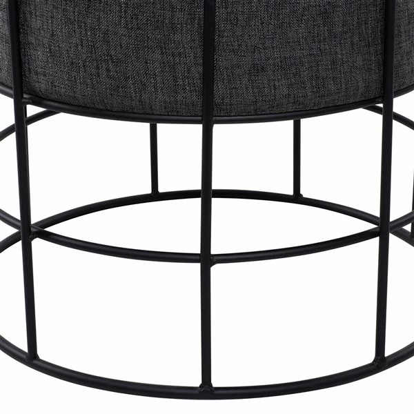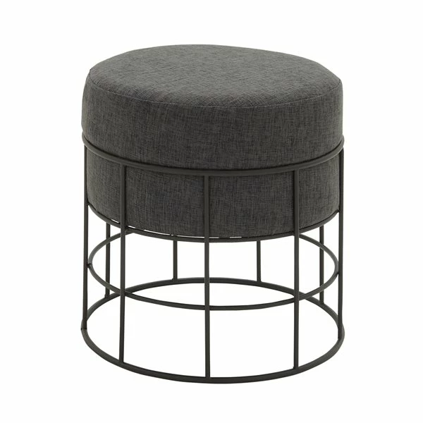 - Features short cylinder-style fabric stool top with a cylinder metal frame