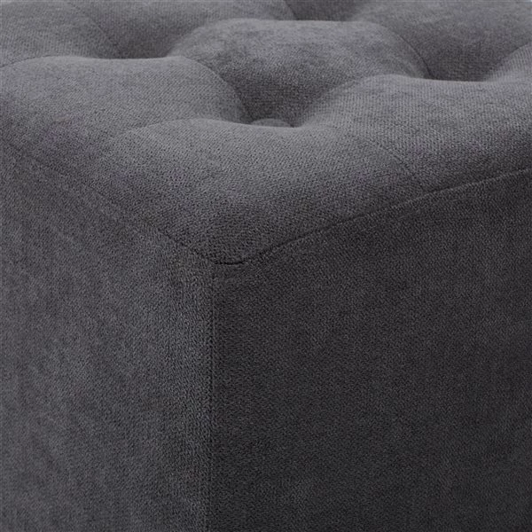 - This pouf has 4 black tapered legs with tufted seat cushion