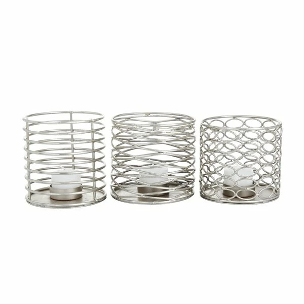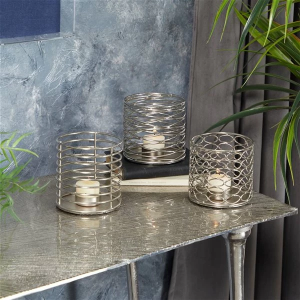 Brand new 🔥 Grayson Lane Set of 3 4-in x 4-in Modern Candle Holders -Silver Iron ⭐