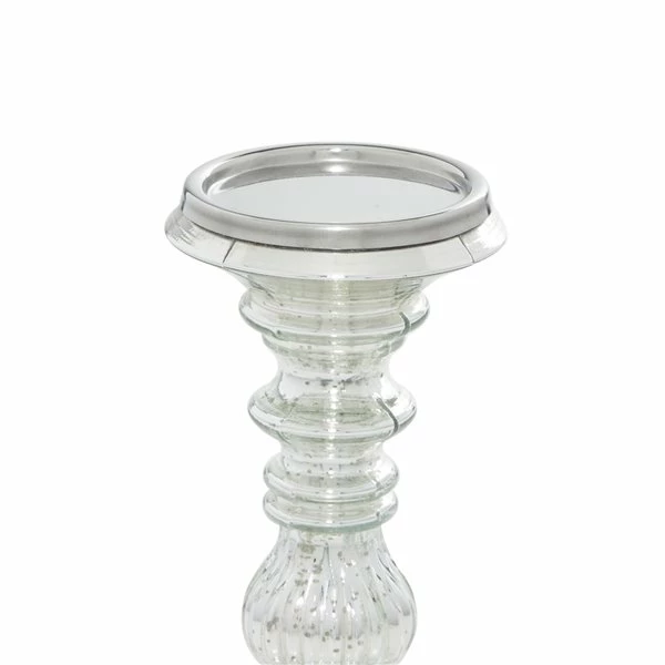 - Infuse your space in the romantic candlelight glow that emits from this set of silver pillar candle holders for home