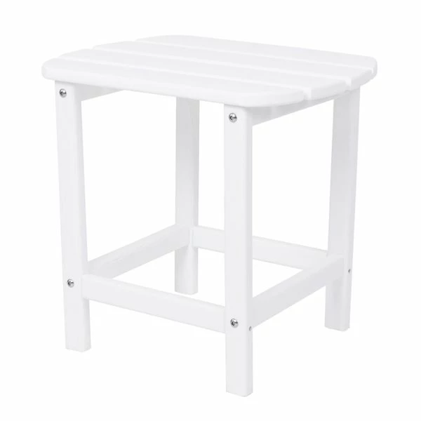 - This white outdoor side table is made from non-hydroscopic resin. It does not absorb water or moisture from the air and is resistant to cracks